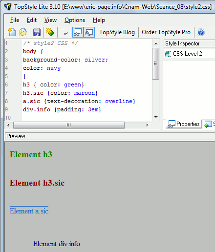 Propriétés des sélecteurs | Classes de style | Division d'un document | Position des objets | Exercices |