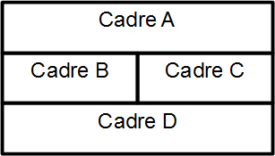 Le cadre A est en haut de la page. Le cadre B à gauche et C est à droite. Enfin, le cadre D est en bas de page.